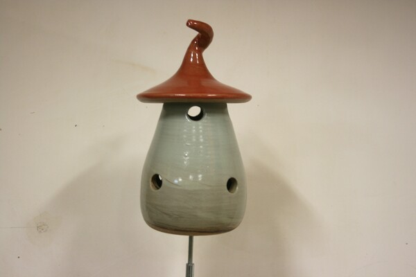 Met dit sprookjesachtige huisje kunnen we de lieveheersbeestjes een handje helpen om goed de winter door te komen. Zo’n pot is voor hen een veilige en droge behuizing. De ijzeren pin, waardoor de pot makkelijk is te plaatsen, is ca. 65 cm lang.