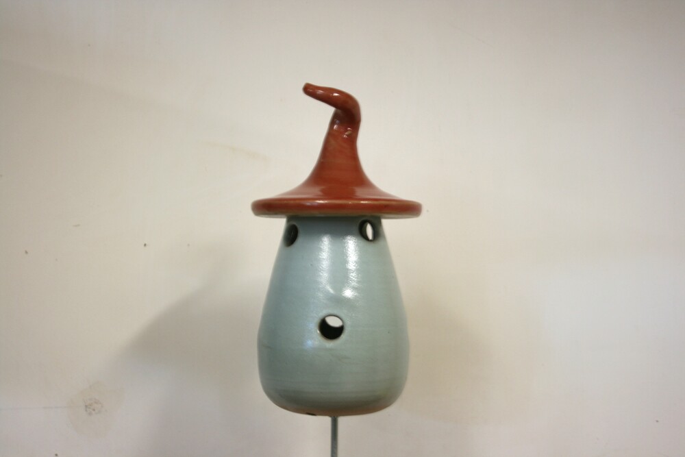 Met dit sprookjesachtige huisje kunnen we de lieveheersbeestjes een handje helpen om goed de winter door te komen. Zo’n pot is voor hen een veilige en droge behuizing. De ijzeren pin, waardoor de pot makkelijk is te plaatsen, is ca. 65 cm lang.