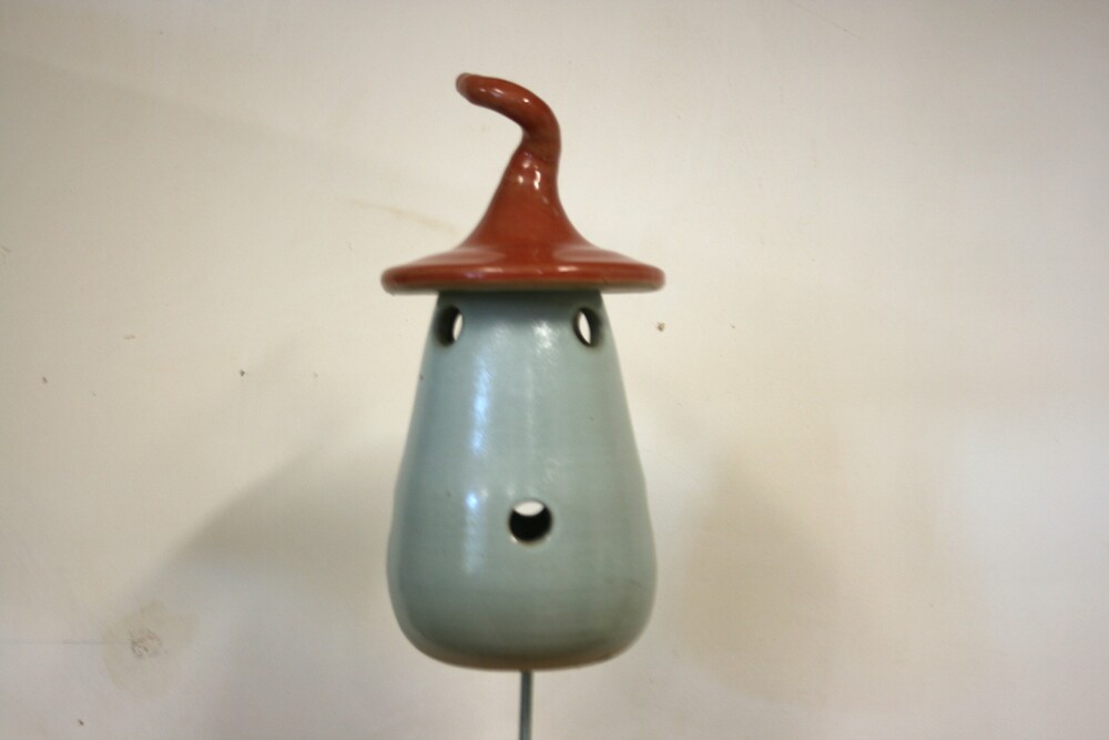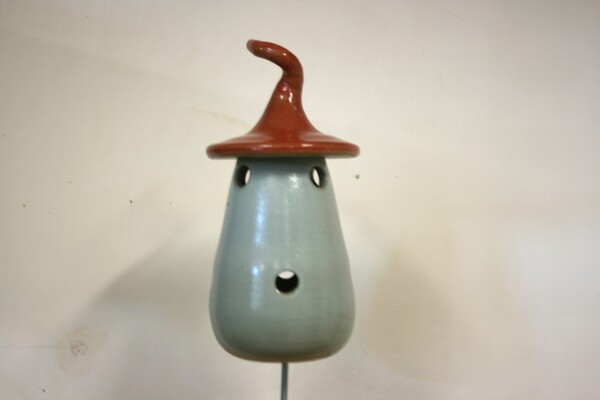 Met dit sprookjesachtige huisje kunnen we de lieveheersbeestjes een handje helpen om goed de winter door te komen. Zo’n pot is voor hen een veilige en droge behuizing. De ijzeren pin, waardoor de pot makkelijk is te plaatsen, is ca. 65 cm lang.
