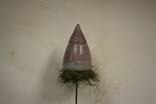 De ijzeren pin, waardoor de pot makkelijk is te plaatsen, is ca. 50 cm lang.