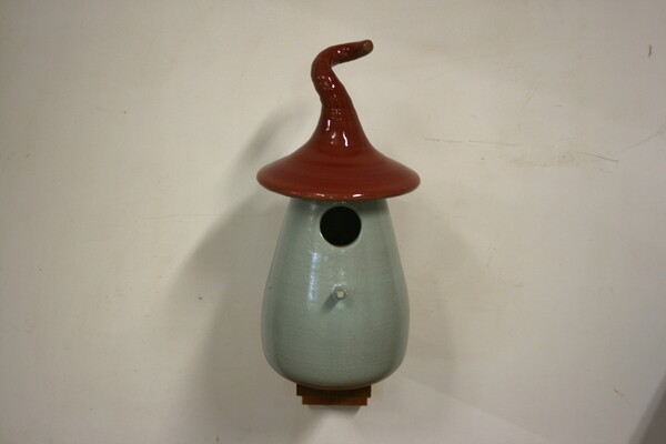 Dit sprookjesachtige keramieken vogelhuisje is door onze pottenbakker met de hand gedraaid, daardoor is ieder huisje uniek. Het huisje heeft een vlieggat van 32mm. en is geschikt voor; Koolmees, Kuifmees, Boomklever, Bonte Vliegenvanger, Gekraagde Roodstaart.