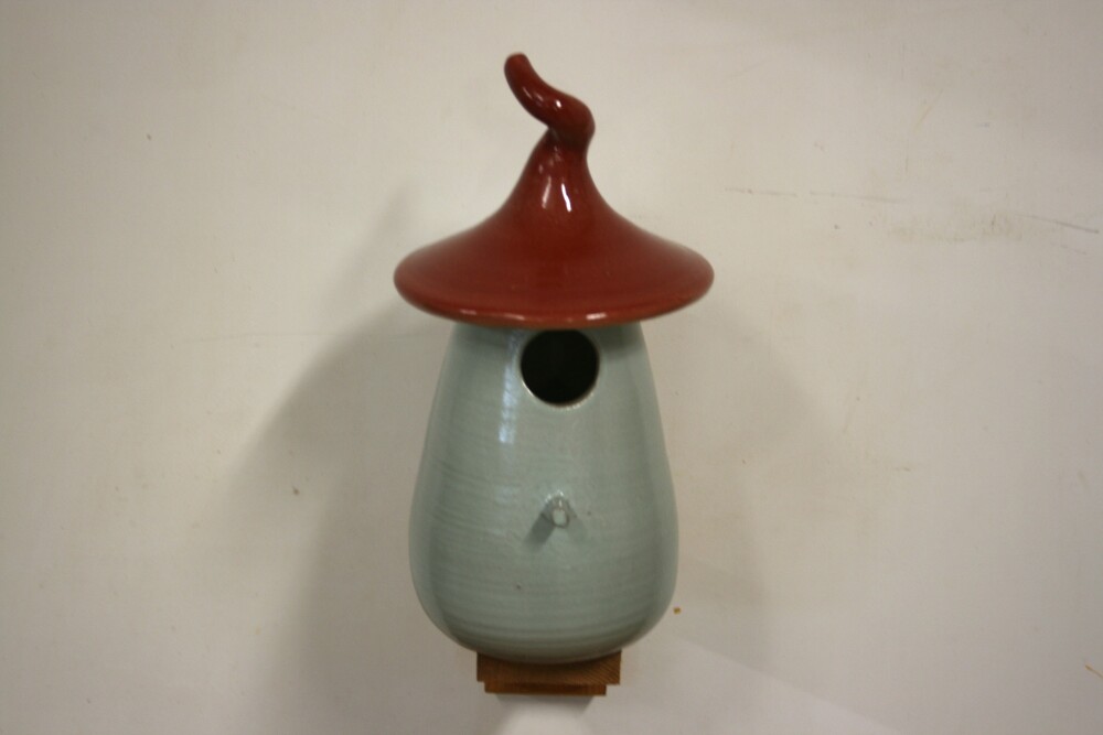 Dit sprookjesachtige keramieken vogelhuisje is door onze pottenbakker met de hand gedraaid, daardoor is ieder huisje uniek. Het huisje heeft een vlieggat van 32mm. en is geschikt voor; Koolmees, Kuifmees, Boomklever, Bonte Vliegenvanger, Gekraagde Roodstaart.
