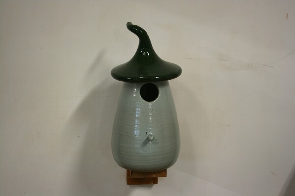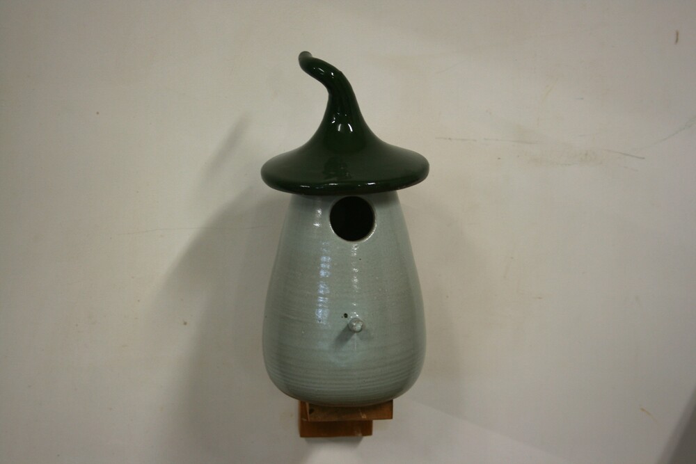 Dit sprookjesachtige keramieken vogelhuisje is door onze pottenbakker met de hand gedraaid, daardoor is ieder huisje uniek. Het huisje heeft een vlieggat van 32mm. en is geschikt voor; Koolmees, Kuifmees, Boomklever, Bonte Vliegenvanger, Gekraagde Roodstaart.