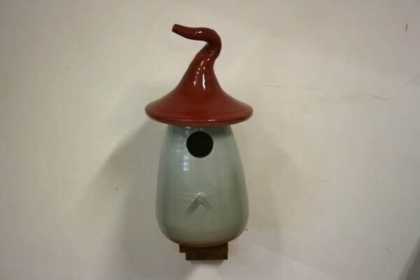 Dit sprookjesachtige keramieken vogelhuisje is door onze pottenbakker met de hand gedraaid, daardoor is ieder huisje uniek. Het huisje heeft een vlieggat van 32mm. en is geschikt voor; Koolmees, Kuifmees, Boomklever, Bonte Vliegenvanger, Gekraagde Roodstaart.