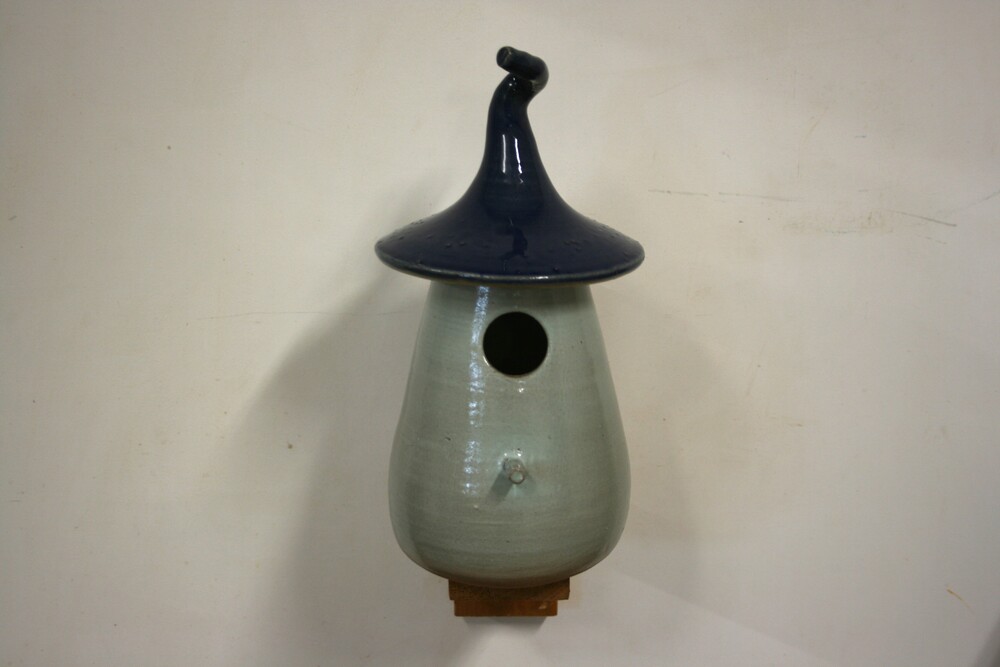 Dit sprookjesachtige keramieken vogelhuisje is door onze pottenbakker met de hand gedraaid, daardoor is ieder huisje uniek. Het huisje heeft een vlieggat van 32mm. en is geschikt voor; Koolmees, Kuifmees, Boomklever, Bonte Vliegenvanger, Gekraagde Roodstaart.