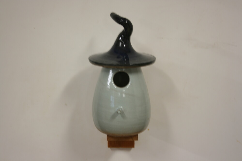 Dit sprookjesachtige keramieken vogelhuisje is door onze pottenbakker met de hand gedraaid, daardoor is ieder huisje uniek. Het huisje heeft een vlieggat van 32mm. en is geschikt voor; Koolmees, Kuifmees, Boomklever, Bonte Vliegenvanger, Gekraagde Roodstaart.