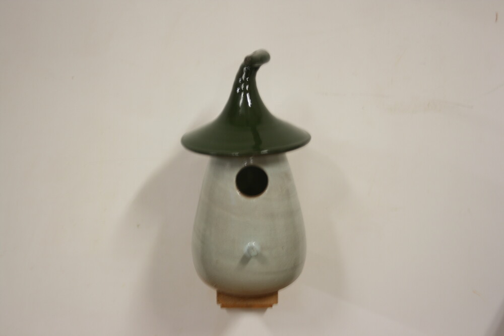 Dit sprookjesachtige keramieken vogelhuisje is door onze pottenbakker met de hand gedraaid, daardoor is ieder huisje uniek. Het huisje heeft een vlieggat van 32mm. en is geschikt voor; Koolmees, Kuifmees, Boomklever, Bonte Vliegenvanger, Gekraagde Roodstaart.