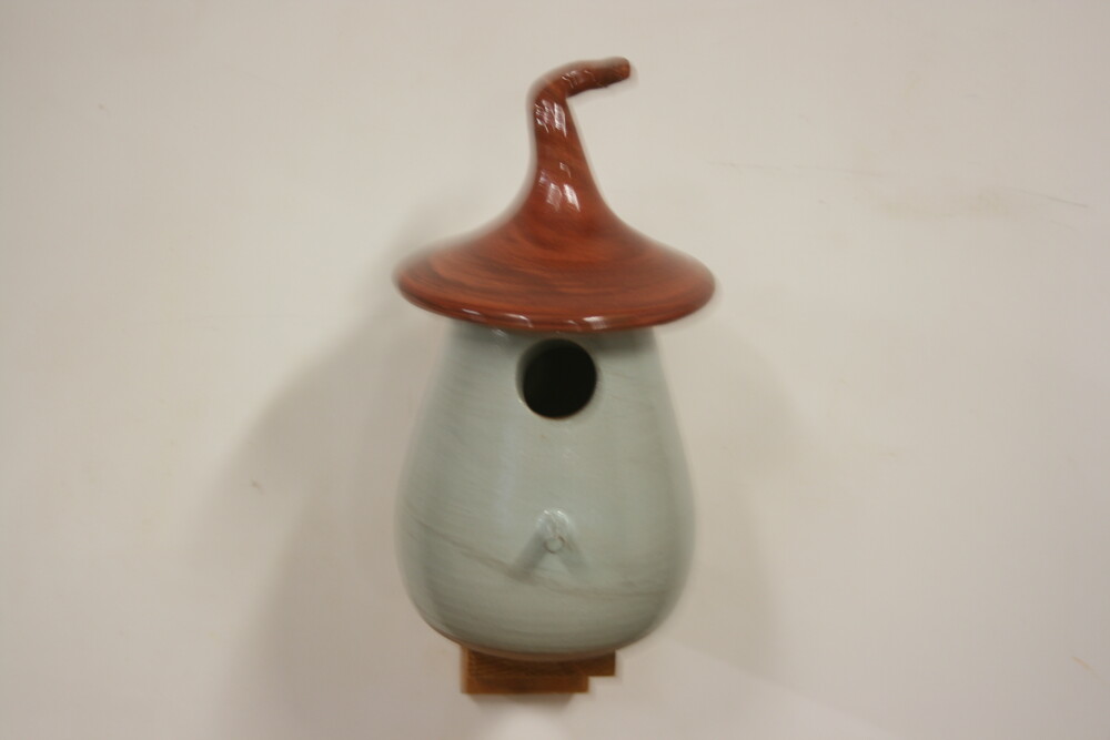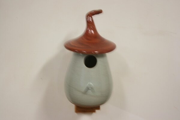 Dit sprookjesachtige keramieken vogelhuisje is door onze pottenbakker met de hand gedraaid, daardoor is ieder huisje uniek. Het huisje heeft een vlieggat van 32mm. en is geschikt voor; Koolmees, Kuifmees, Boomklever, Bonte Vliegenvanger, Gekraagde Roodstaart.