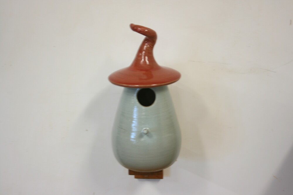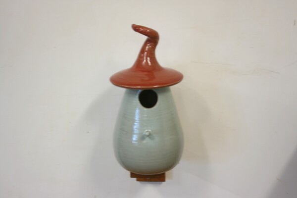 Dit sprookjesachtige keramieken vogelhuisje is door onze pottenbakker met de hand gedraaid, daardoor is ieder huisje uniek. Het huisje heeft een vlieggat van 32mm. en is geschikt voor; Koolmees, Kuifmees, Boomklever, Bonte Vliegenvanger, Gekraagde Roodstaart.