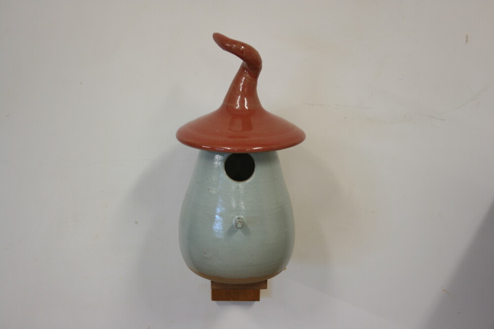 Dit sprookjesachtige keramieken vogelhuisje is door onze pottenbakker met de hand gedraaid, daardoor is ieder huisje uniek. Het huisje heeft een vlieggat van 32mm. en is geschikt voor; Koolmees, Kuifmees, Boomklever, Bonte Vliegenvanger, Gekraagde Roodstaart.