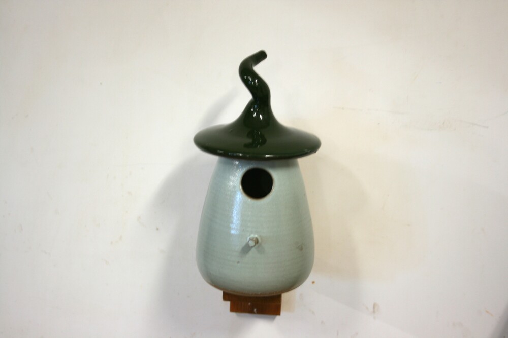 Dit sprookjesachtige keramieken vogelhuisje is door onze pottenbakker met de hand gedraaid, daardoor is ieder huisje uniek. Het huisje heeft een vlieggat van 32mm. en is geschikt voor; Koolmees, Kuifmees, Boomklever, Bonte Vliegenvanger, Gekraagde Roodstaart.