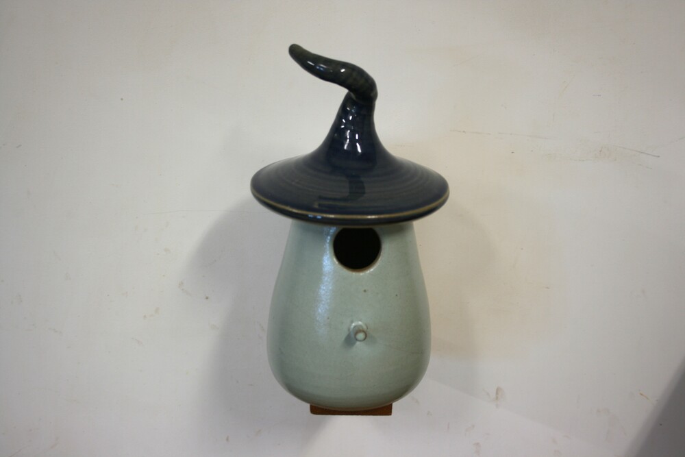 Dit sprookjesachtige keramieken vogelhuisje is door onze pottenbakker met de hand gedraaid, daardoor is ieder huisje uniek. Het huisje heeft een vlieggat van 32mm. en is geschikt voor; Koolmees, Kuifmees, Boomklever, Bonte Vliegenvanger, Gekraagde Roodstaart.