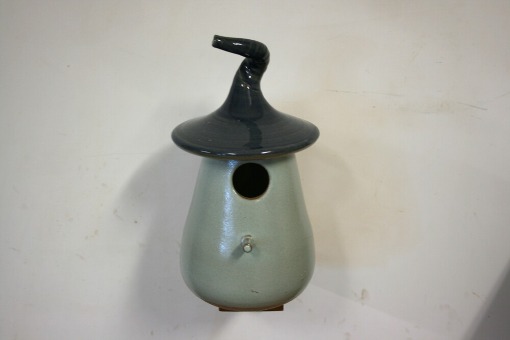 Dit sprookjesachtige keramieken vogelhuisje is door onze pottenbakker met de hand gedraaid, daardoor is ieder huisje uniek. Het huisje heeft een vlieggat van 32mm. en is geschikt voor; Koolmees, Kuifmees, Boomklever, Bonte Vliegenvanger, Gekraagde Roodstaart.