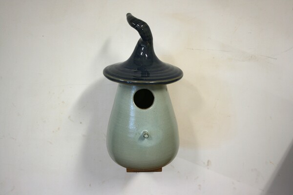 Dit sprookjesachtige keramieken vogelhuisje is door onze pottenbakker met de hand gedraaid, daardoor is ieder huisje uniek. Het huisje heeft een vlieggat van 32mm. en is geschikt voor; Koolmees, Kuifmees, Boomklever, Bonte Vliegenvanger, Gekraagde Roodstaart.