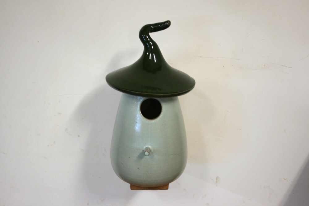 Dit sprookjesachtige keramieken vogelhuisje is door onze pottenbakker met de hand gedraaid, daardoor is ieder huisje uniek. Het huisje heeft een vlieggat van 32mm. en is geschikt voor; Koolmees, Kuifmees, Boomklever, Bonte Vliegenvanger, Gekraagde Roodstaart.