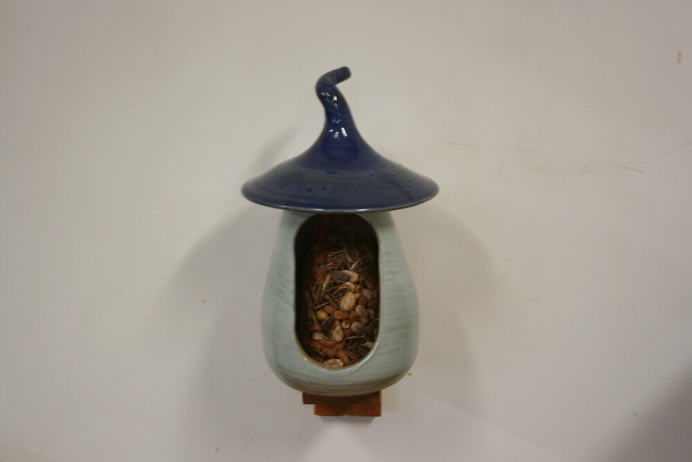 Dit sprookjesachtige keramieken vogelvoederhuisje is door onze pottenbakker met de hand gedraaid, daardoor is ieder huisje uniek.